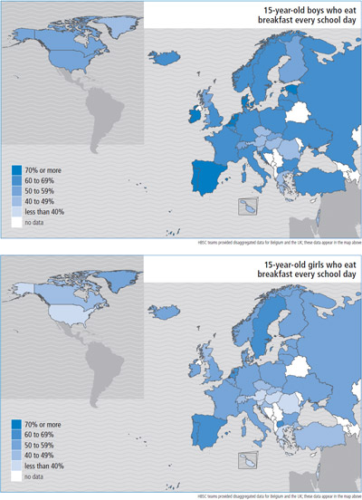 Yet currently, too few children and adolescents around Europe regularly start their day with breakfast. While 91% of 11-year-old boys and 90% of 11-year-old girls in the Netherlands have a regular morning meal, only 52% of their Greek counterparts and 51% of Slovene 11-year-olds do.